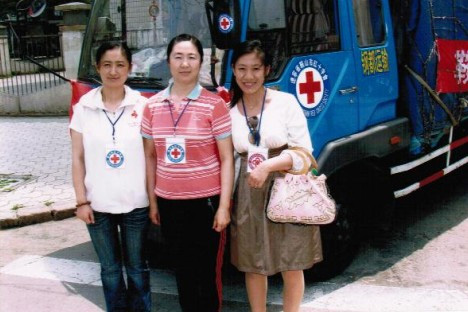 鞍山市鋼都運(yùn)輸有限公司老板娘張濱娜(右一)與鞍山市紅十字會會長(右二)及辦公室人員(右三)合影留念,承運(yùn)鞍山市到四川省汶川地震救災(zāi)物資,貨車車輛由鋼都配貨站提供。當(dāng)晚在鞍山市電視臺新聞聯(lián)播播放過。